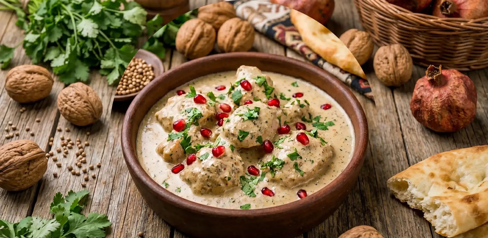 Polej sosem wcześniej podgotowanego, upieczonego i pokrojonego na kawałki indyka (potrzebujesz pół tuszy – 2–2,5 kg – na tę porcję sosu). Schłodź danie w lodówce przez kilka godzin, aby przegryzły się smaki. Przed podaniem udekoruj saciwi nasionami granatu i posiekaną kolendrą. Serwuj z gruzińskim chlebem (np. tonis puri).
